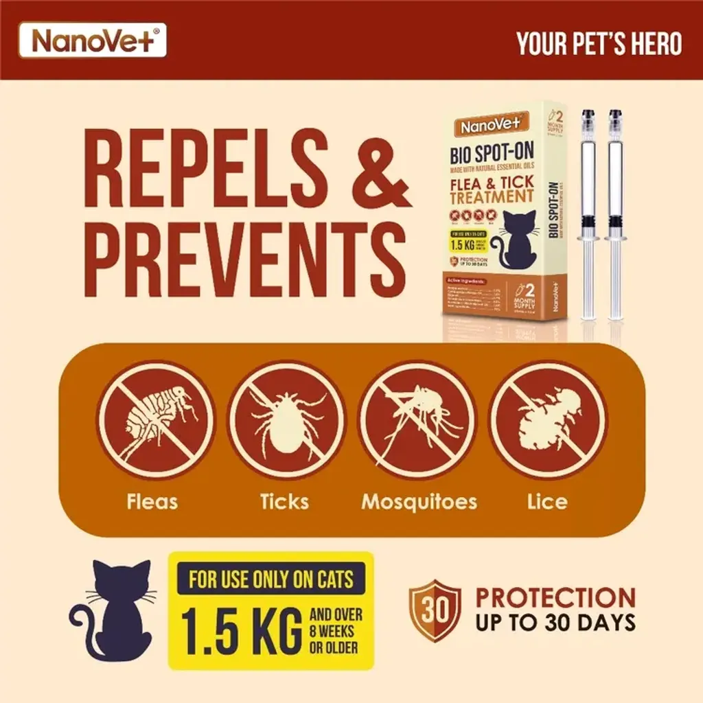 Nanovet Bio Spot-On, you can enjoy peace of mind knowing that your cat is protected from fleas and ticks, allowing them to roam and play freely without the worry of infestations. Regular use of this spot-on treatment can help keep your cat healthy and happy, making it an essential addition to your pet care routine.